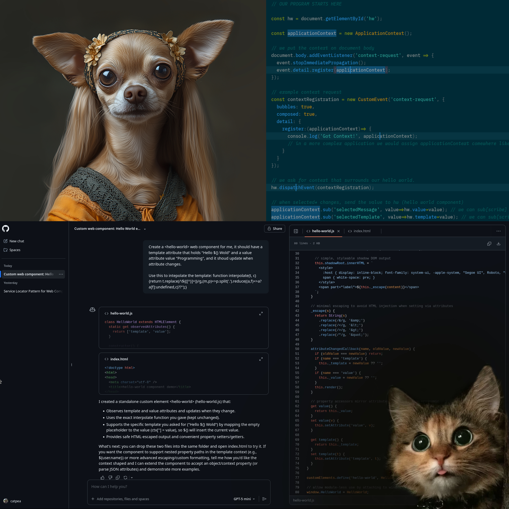 This is a starting point to comprehending latest modern programming, that allows you to assemble a library of AI generated Web Components. And make some applications that share a central object, referred to as context. We will not use any code, but I...