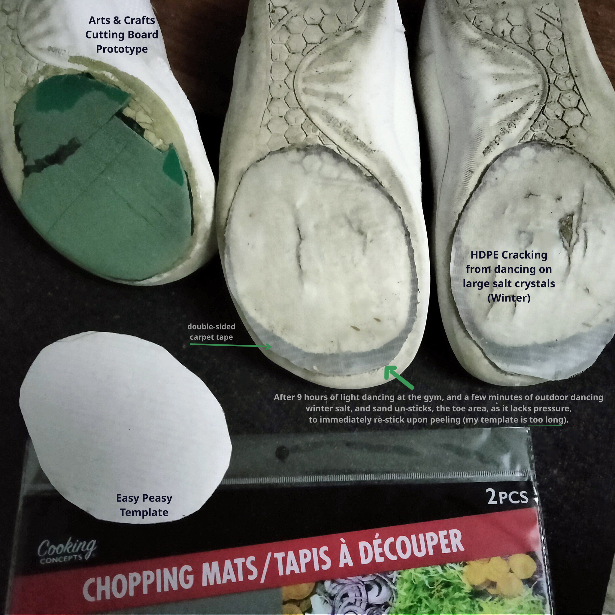 Shuffle Dancing, or more correctly Cutting Shapes, requires a concrete floor with a sprinkle of sand on it. The dance moves depend on sliding you feet, especially when you are going to perform them for extended durations. A sandy parking lot, or a salty...